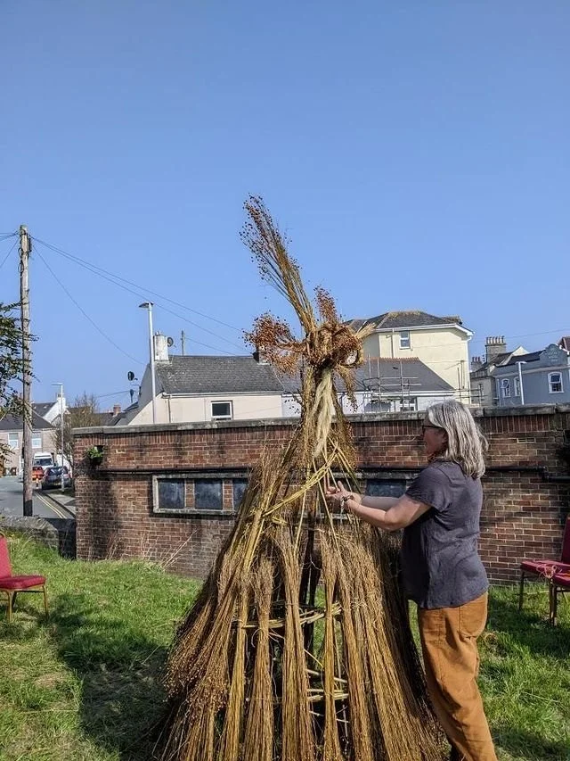 Visitors are invited to take part in creating a striking, free-standing giant corn dolly made from willow and flax straw.