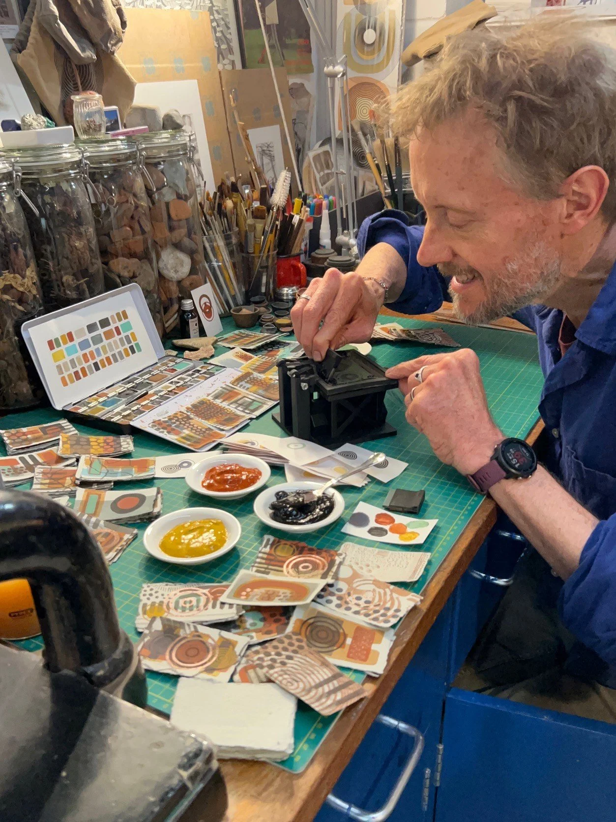 Tom will use his DCMF grant to develop his relief printing. It is particularly hard to hand make natural relief inks, as the pigment particle sizes need to be extremely small.