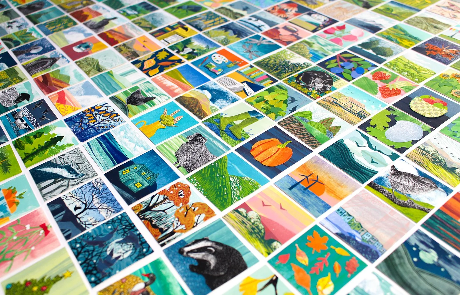In 2025 she challenged herself with making a mini collage each day for a whole year, using a mix of wood engravings and monotypes plus sometimes the addition of pencils, pens and pastels, each representing that day. See the whole year in one room and be the first to buy her collage calendar for 2027!