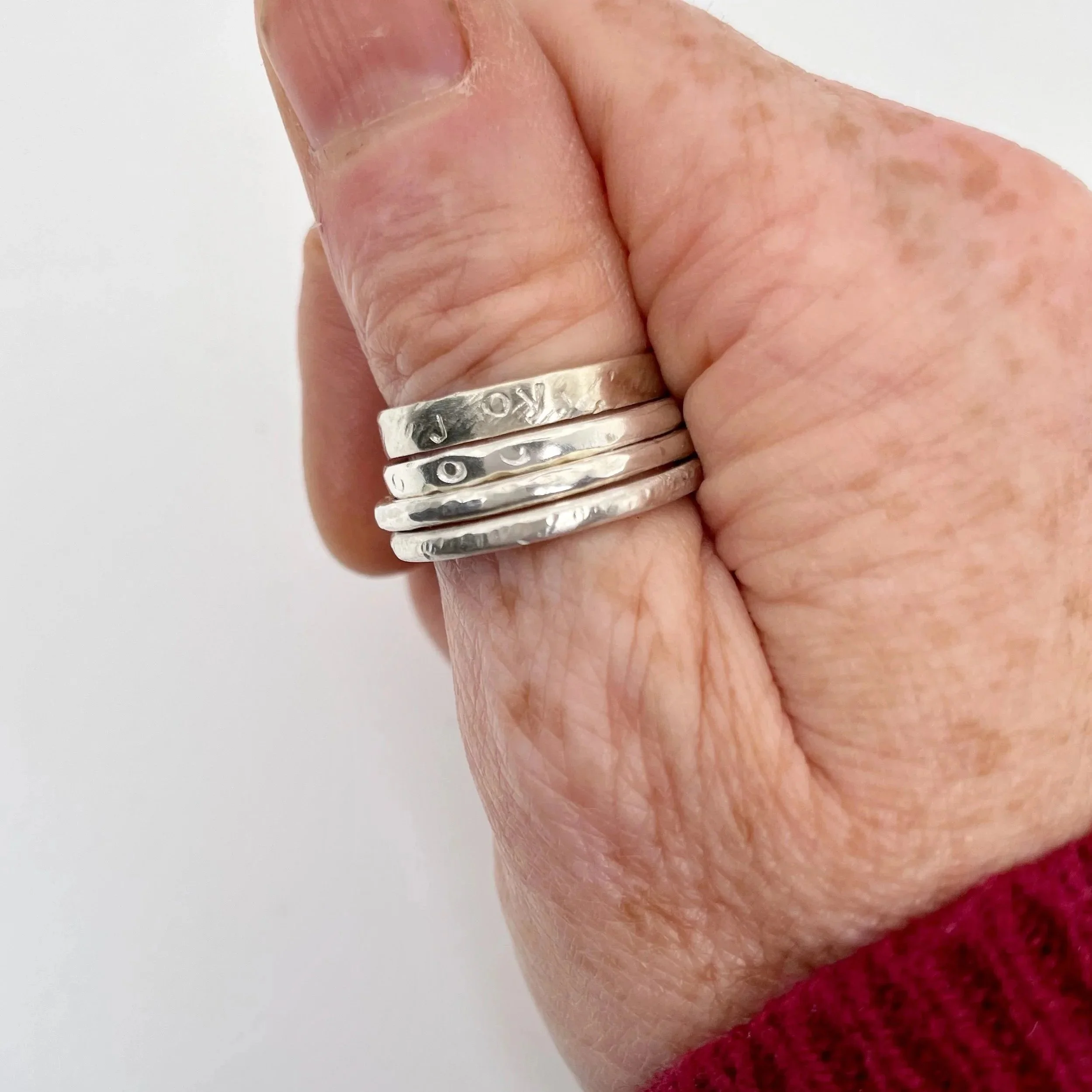 Create beautiful silver stacking rings with different shapes, textures and finishes. Learn, or develop your skills in saw piercing, forming, texturing, soldering, filing and polishing.