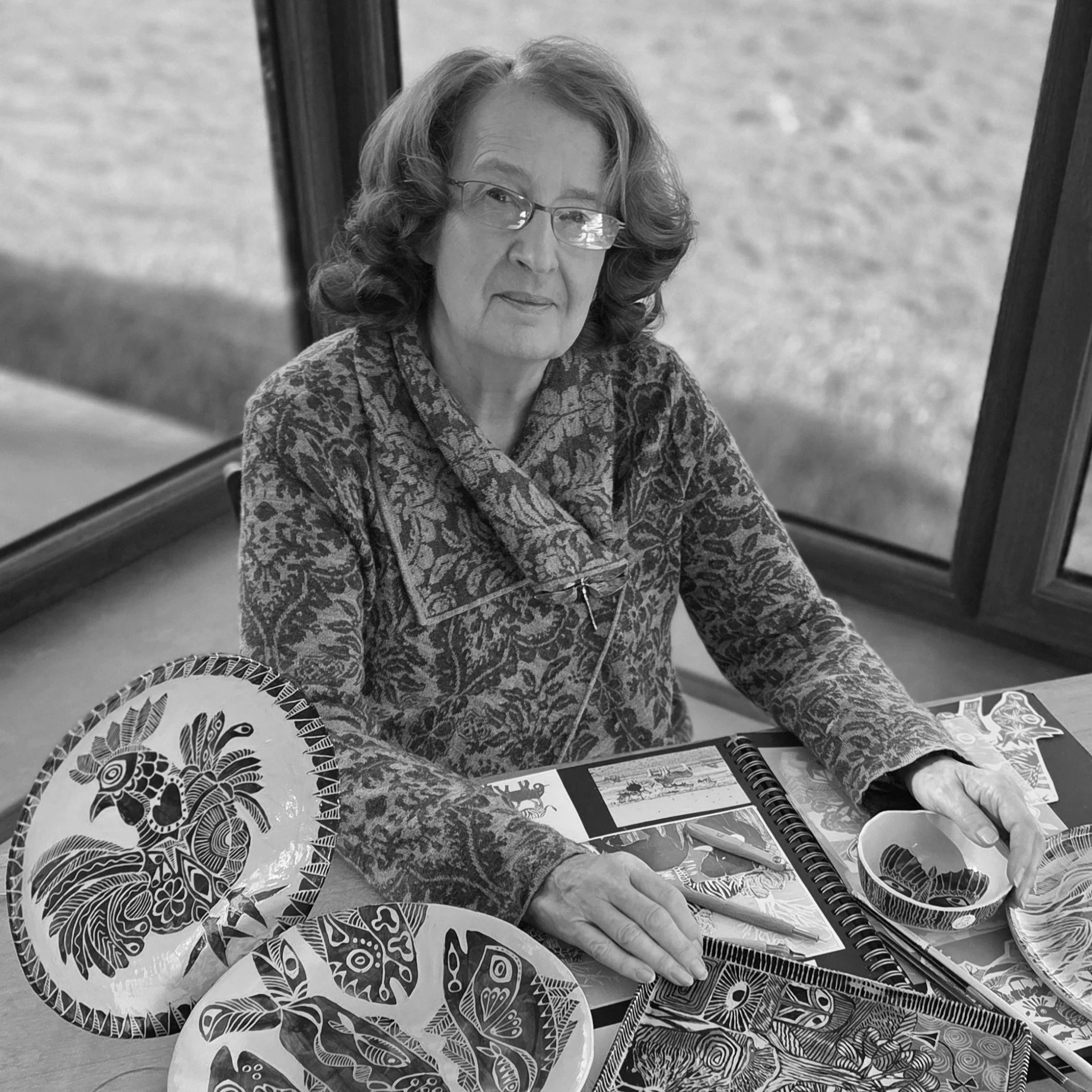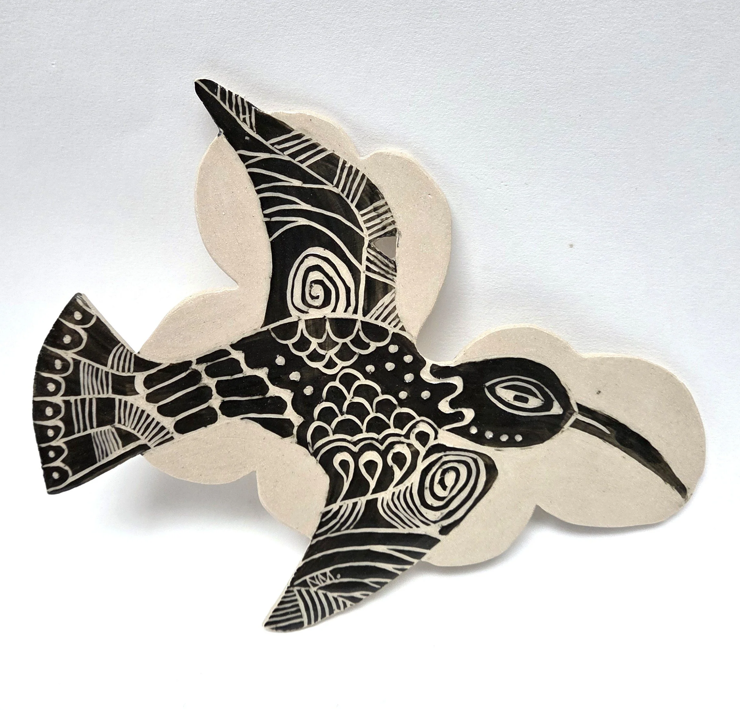 Her work explores the natural interdependence which extends beyond individual physical boundaries. It is an interpretation of energy, ideas, feelings and dreams permeating our lives and surroundings. These whimsical inventions use shapes and patterns which have been universal for thousands of years. Stories told through images and words, free spirits reflected in the clay.