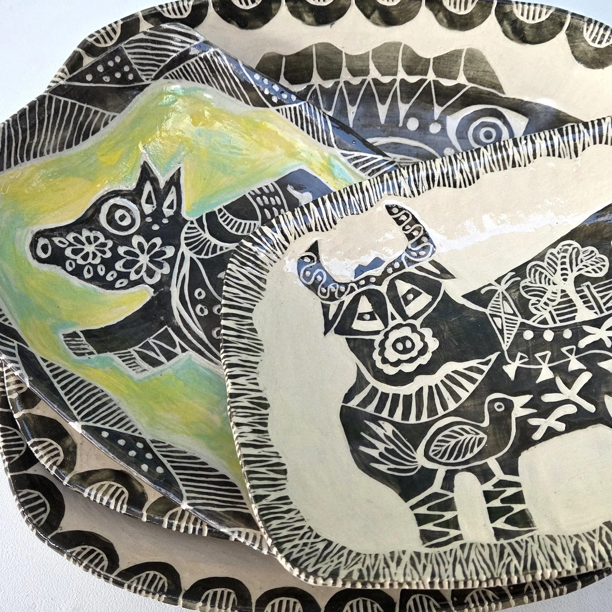 Nancy Murgatroyd turns thoughts into tactile, relatable, contemporary ceramics. She works in stoneware using the traditional sgraffito technique which she studied in her native North Devon.