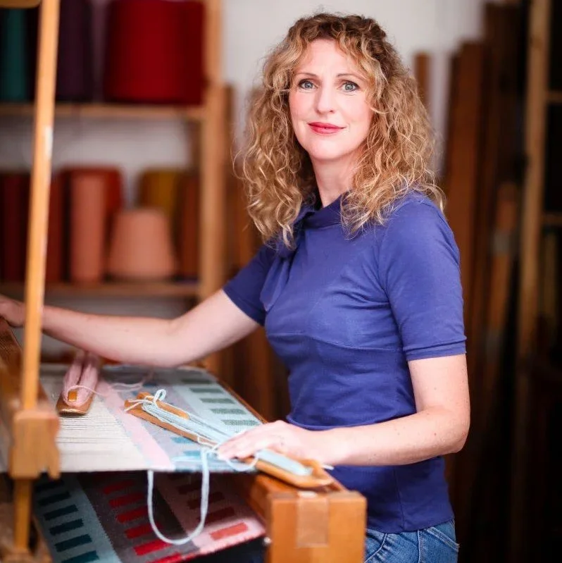 Her rugs and textiles are expertly hand-woven using traditional techniques such as Krokbragd. She combines this with an instinctive and daring approach to colour.
