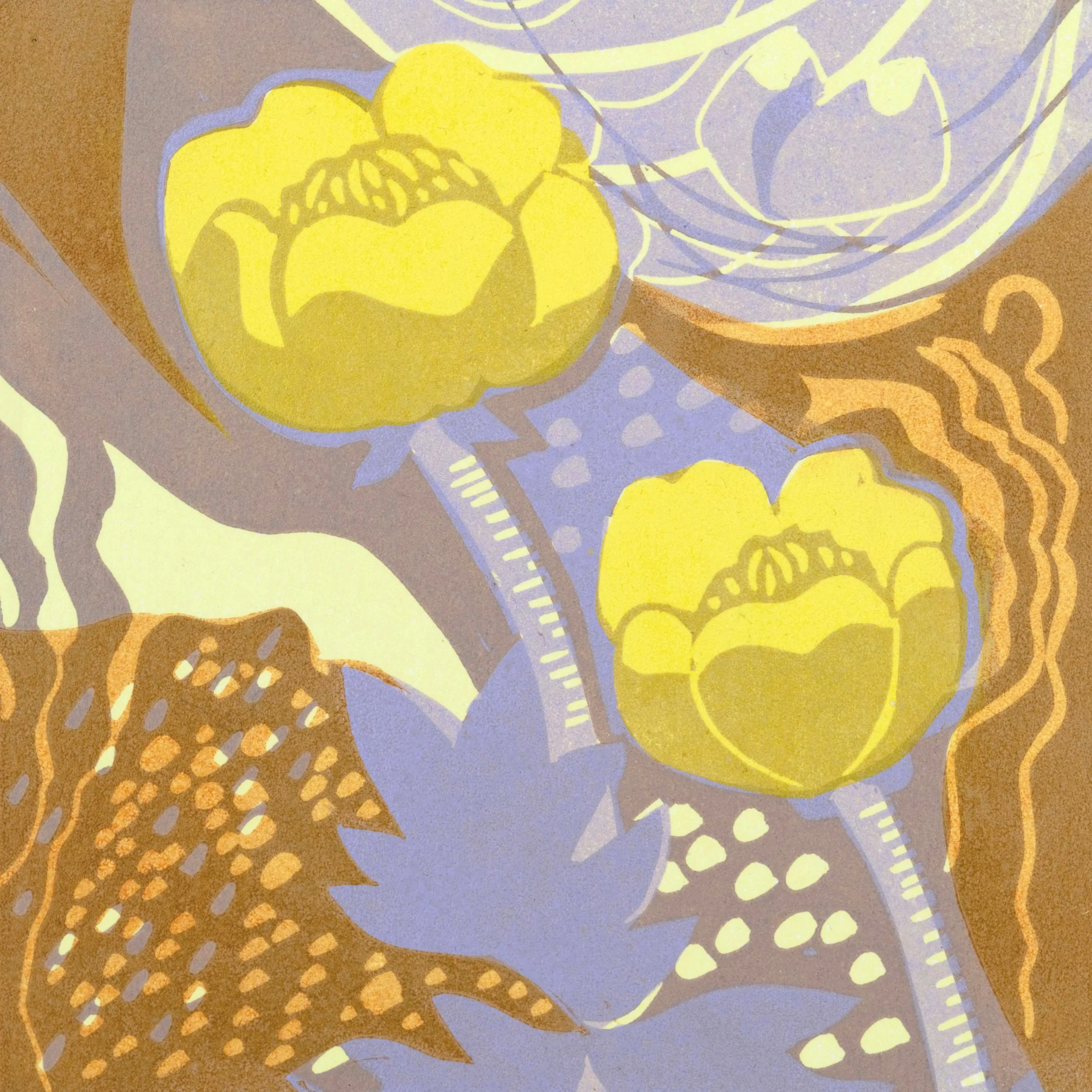 Her prints are created using linocut and the multi-block method, printed on an Etching press. Each print is part of a limited edition.