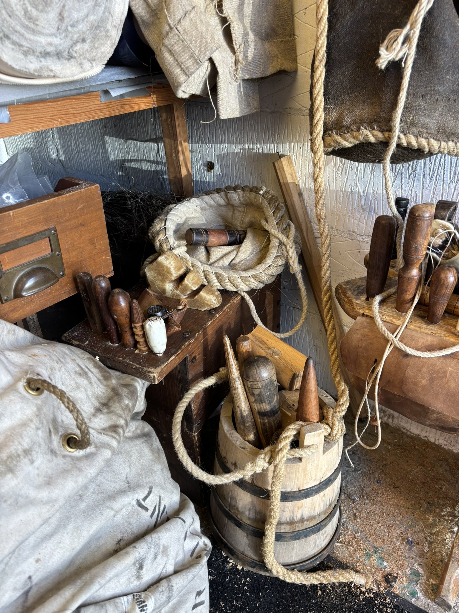 Through demonstrations, workshops and living-history events across the UK, she teaches traditional skills such as hand sewing, knot-tying, splicing and rigging, sharing the history of sailmaking from the Tudor period to the modern era.