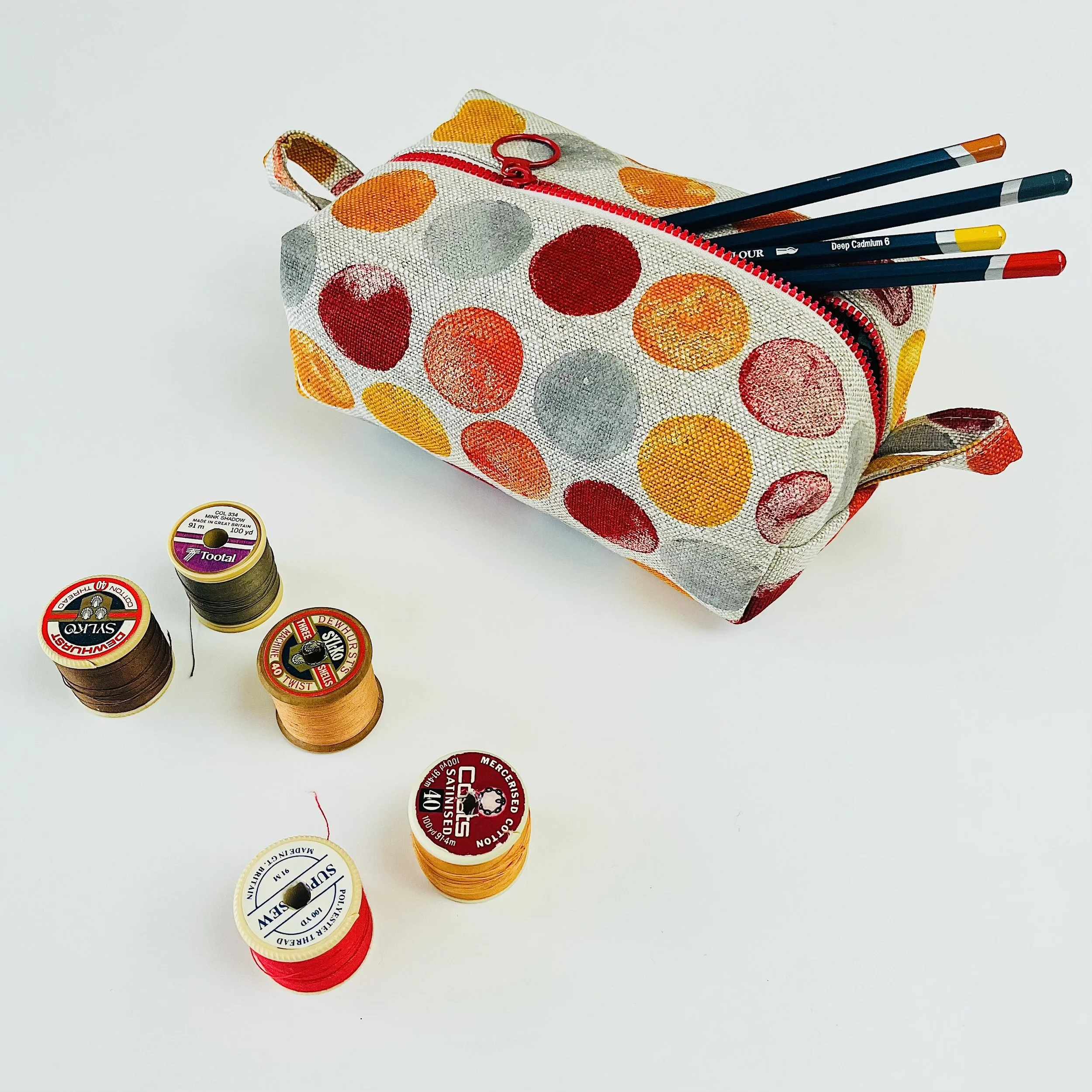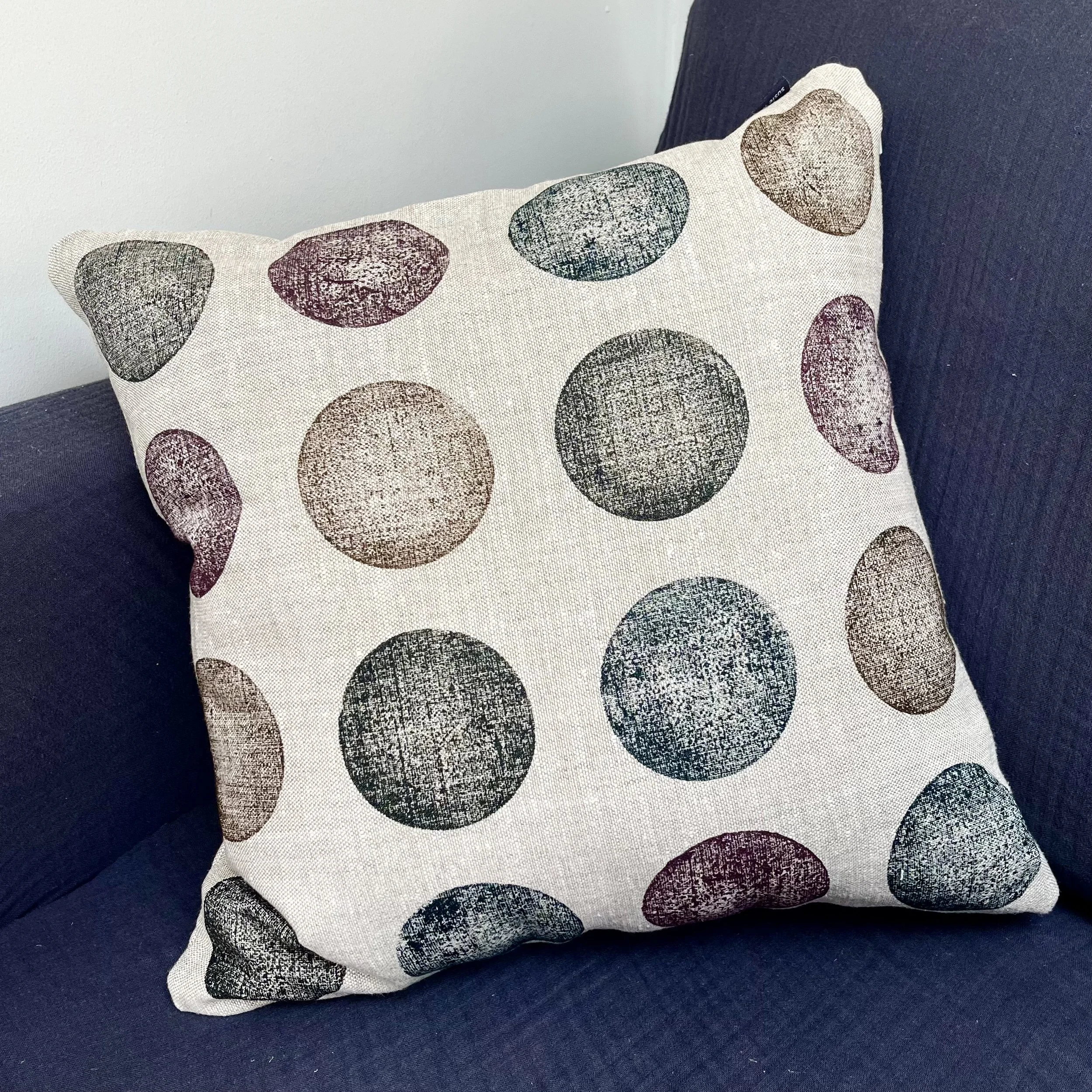In the 1970s Susie Honnor was a rug weaver before a long period working as a teacher intervened. Much later, in January 2022 a newly-built studio space prompted the idea to pursue textile printing and making. She went to the fridge, took out a potato, cut slashes into it, mixed some colours and printed a cushion cover!
